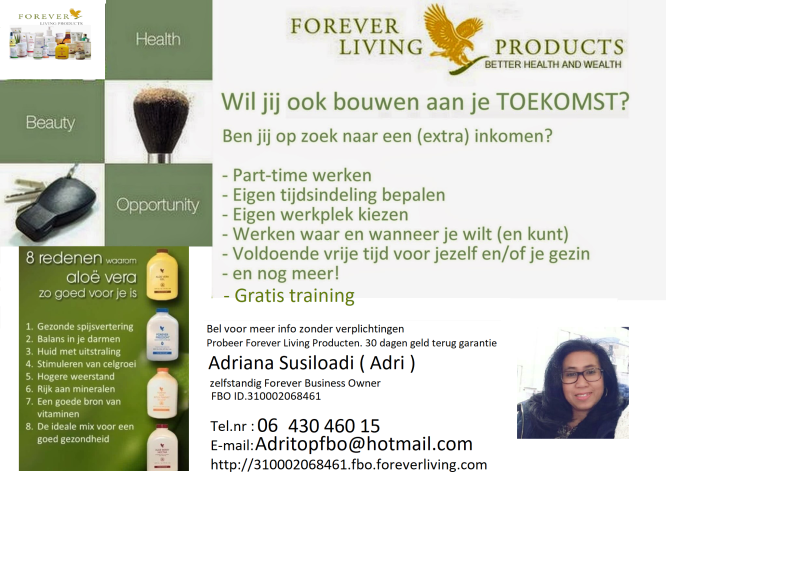 Opgericht in 1978 in Scottsdale, Arizona. Forever Living Products is wereldwijd de grootste teler, producent en distributeur van Aloë Vera Producten.